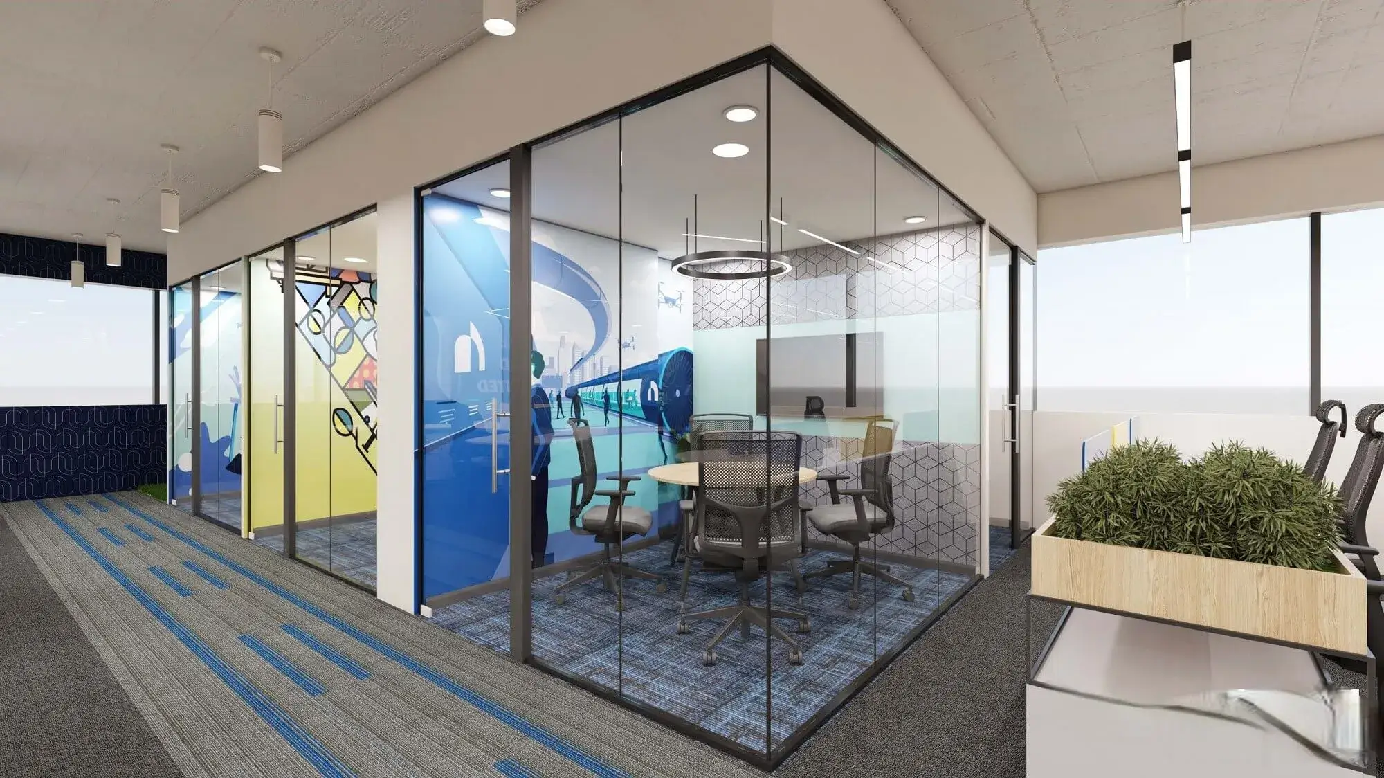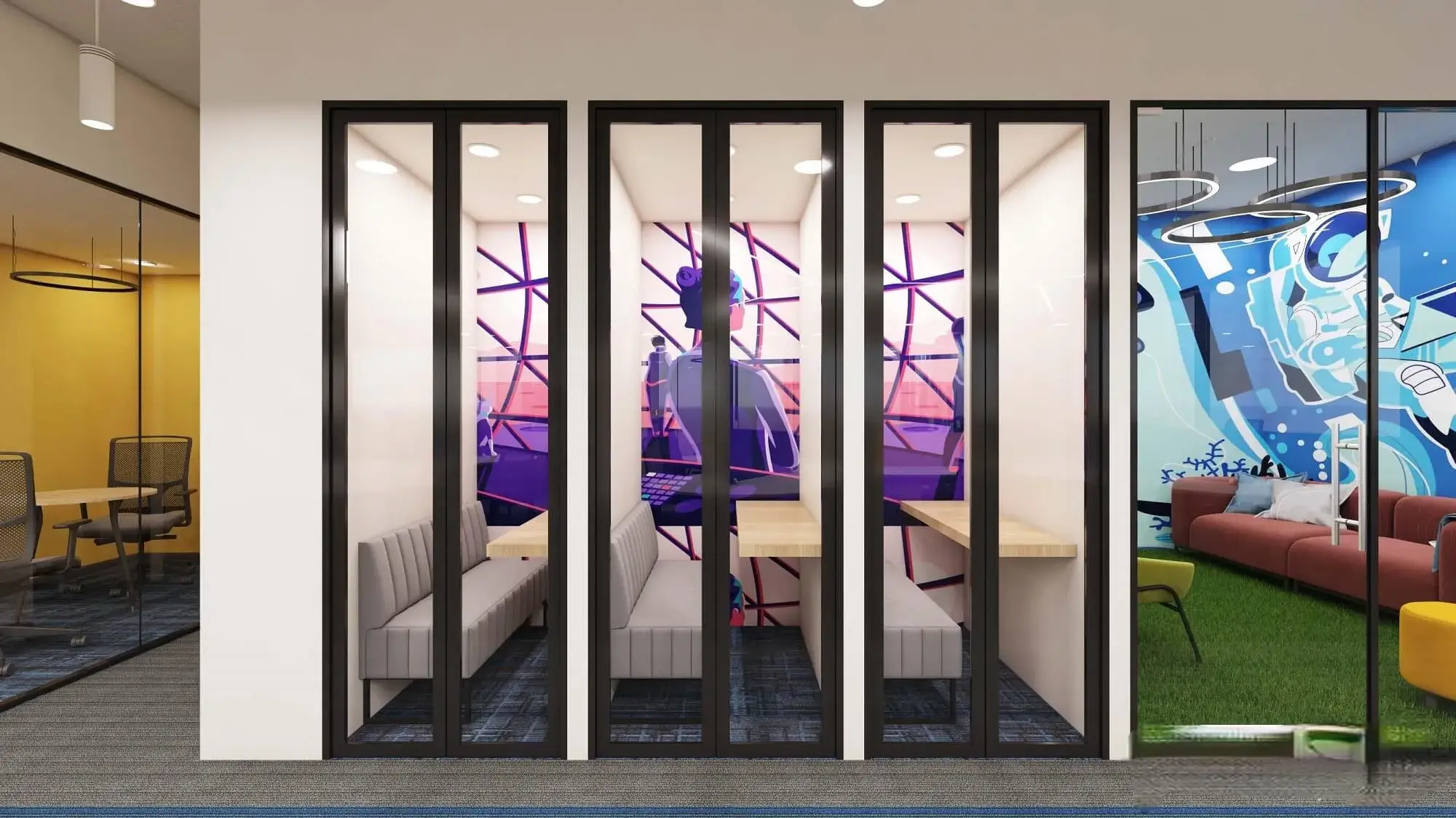 to cater to private conversations in their dynamic work environment. The layout primarily featured linear
