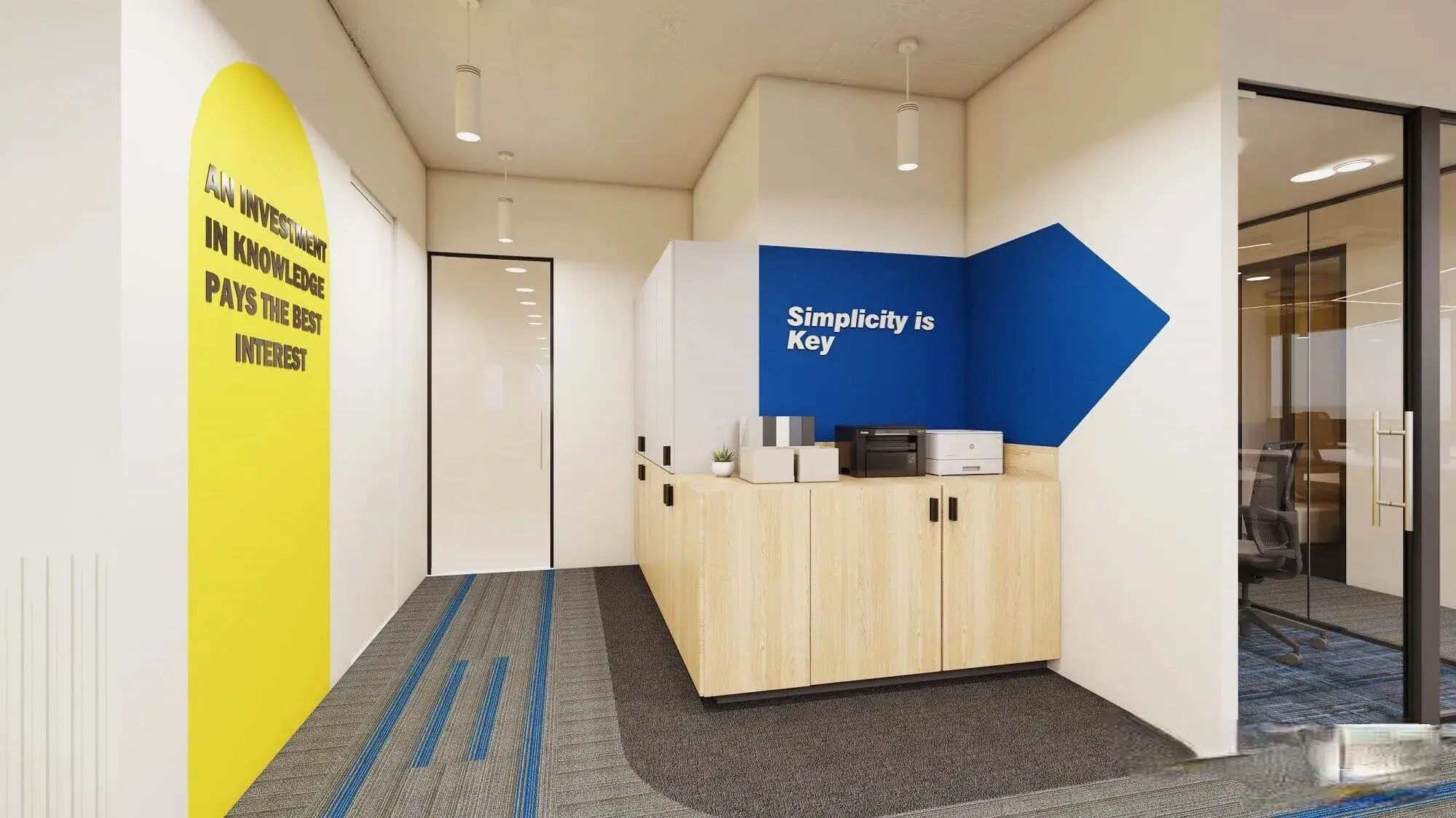 The office design came to life with custom wallpapers featuring astronauts and space motifs. The theme exuded